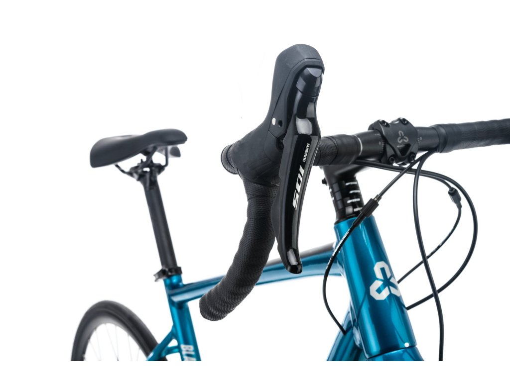 Prudké stúpania, šprinty na rovinách, či rýchle zjazdy z kopcov - to všetko v pohodlí skvelého cestného bicykla, ktorý umocňuje komfort i radosť z jazdy počas dlhých hodín v sedle. Model RACE je o kategóriu vyššie ako COMP. Vsádza na overenú klasiku v podobe série Shimano 105, z ktorej tu môžeš nájsť brzdy, radenie, predný prešmykač, prehadzovačku či kľuky. Kolesá sa točia na nábojoch Shimano Tiagra a sú obuté na plášťoch Mitas Syrinx. Blade splní všetky tvoje očakávania, či už máš rád voľnočasové výjazdy s kamarátmi, alebo sa chceš naháňať s vetrom o preteky. Ovládni cesty s modelom Blade.